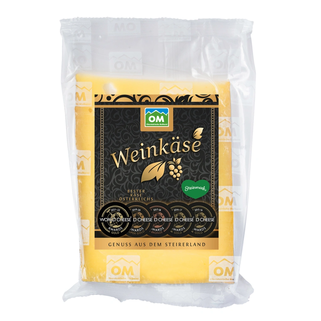 Der Weinkäse gehört zur Katergorie der Hartkäse mit mindestens 55% Fett i. Tr. Und wird aus Rohmilch hergestellt.